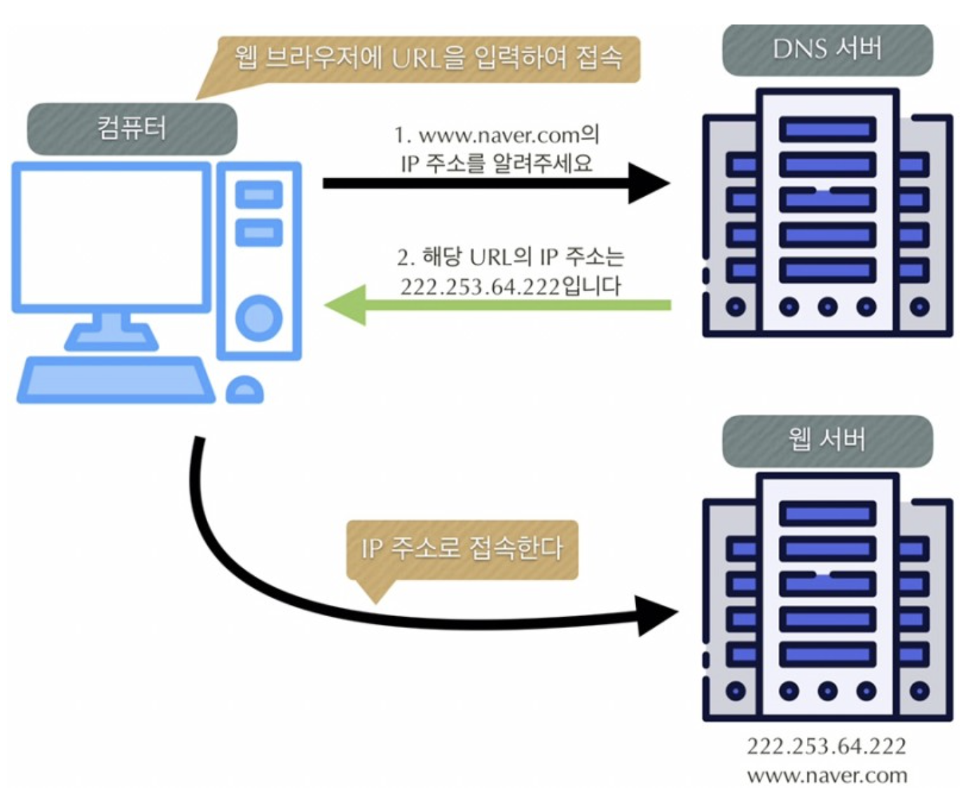 - www.github.co.kr에 접속하면 DNS 서버가 이 웹사이트의 서버 IP 주소를 알려주는 것