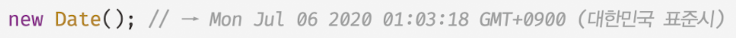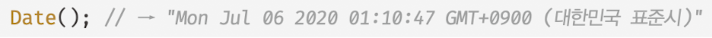 - Date 생성자 함수를 new 연산자 없이 호출 시 Date 객체를 반환하지 않고 날짜와 시간 정보를 나타내는 문자열 반환