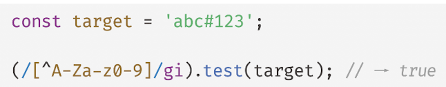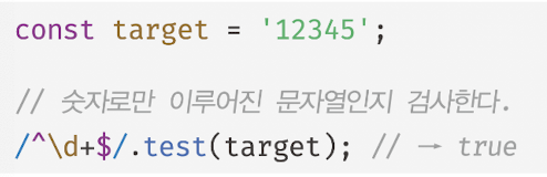 - 인수로 전달받은 문자열에 대해 정규 표현식의 패턴을 검색해 매칭 결과를 불리언 값으로 반환