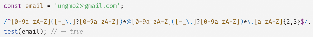 - \w=알파벳, 숫자, 언더스코어 = [A-Za-z0-9_]
