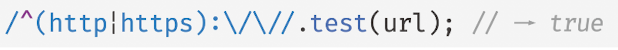 - 패턴은 /로 열고 닫으며 문자열의 따옴표는 생략
