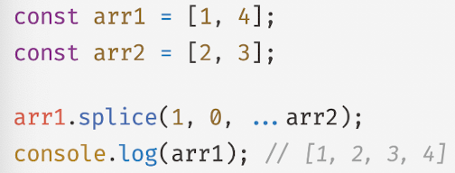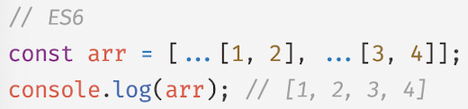 - 스프레드 문법을 배열 리터럴에서 사용 시 ES5에서 사용하던 기존의 방식보다 더욱 간결하고 가독성 좋게 표현 가능