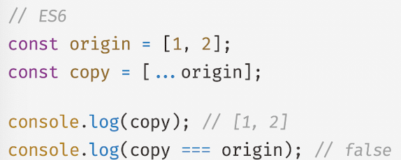 - slice, 스프레드 문법은 원본 배열의 각 요소를 얕은 복사 해 새로운 복사본 생성