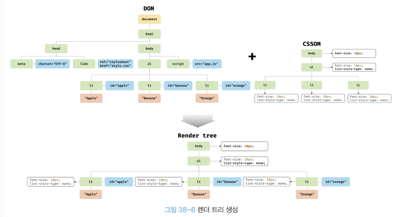 - DOM과 CSSOM은 렌더링을 위해 렌더 트리로 결합