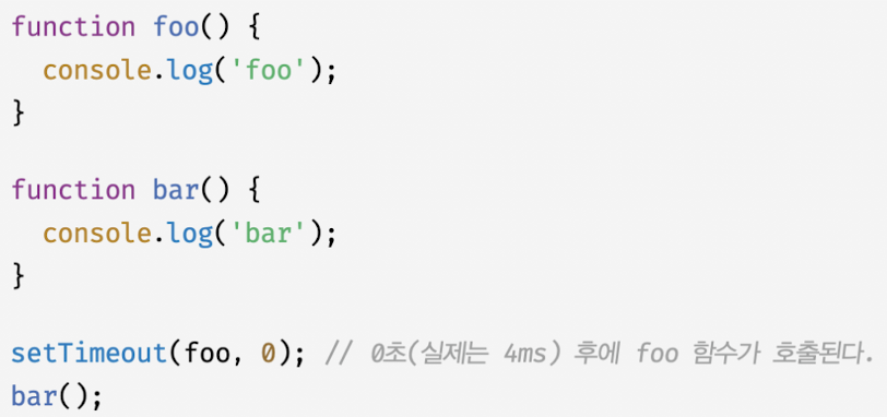 - 타이머가 만료되면 콜백 함수 foo가 태스크 큐에 푸시