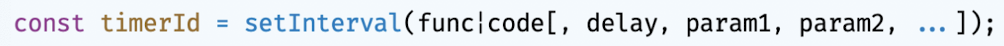 - setInterval 함수는 생성된 타이머를 식별할 수 있는 고유한 타이머 id 반환