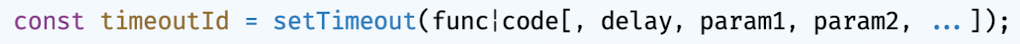 - setTimeout 함수는 생성된 타이머를 식별할 수 있는 고유한 타이머 id 반환