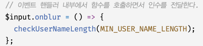 이벤트 핸들러 내부에서 함수 호출하면서 인수 전달