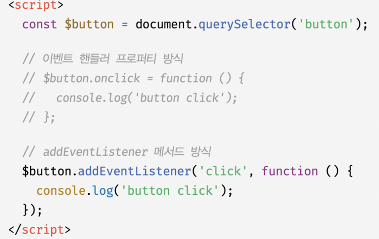 b. 이벤트 핸들러 프로퍼티 방식과 addEventListener 메서드 방식