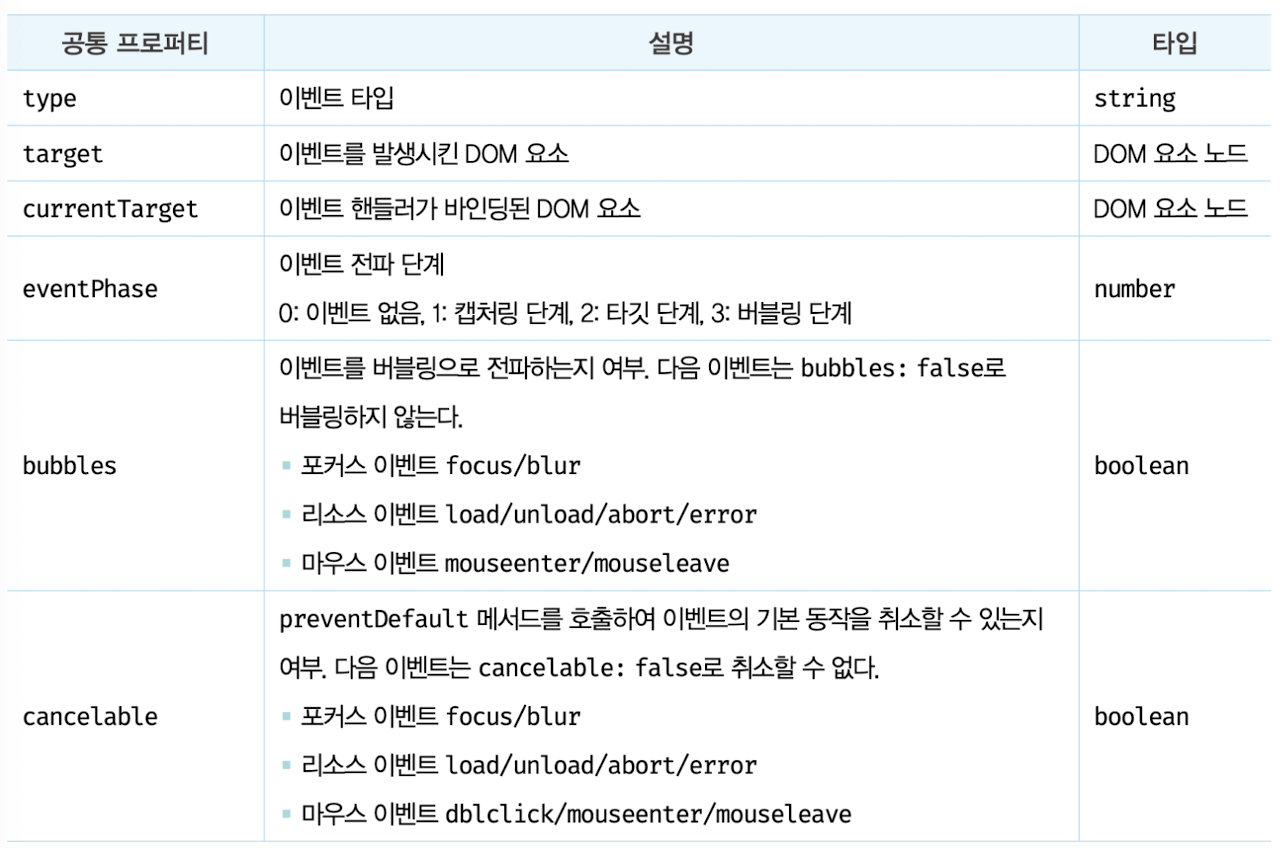 - 이벤트 생성자 함수의 첫번째 인수 : 이벤트 타입을 나타내는 문자열 전달 받음