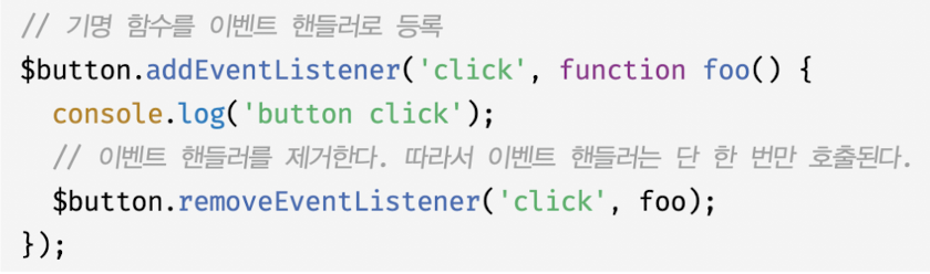 기명 이벤트 핸들러 내부에서 removeEventListener 메서드를 호출하여 이벤트 핸들러를 제거하는건 가능