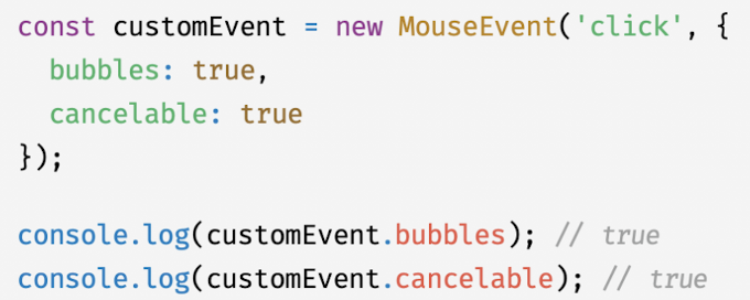 이벤트 객체 고유의 프로퍼티 값 지정하려면 두번째 인수로 프로퍼티 전달
