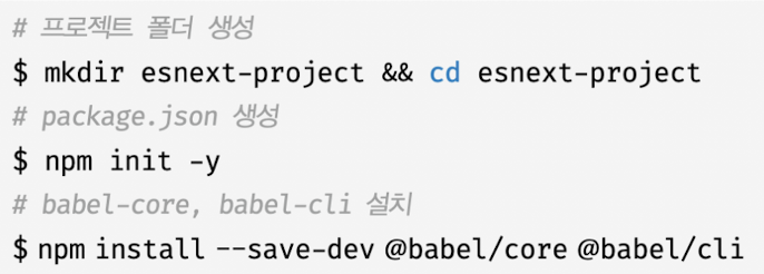 - => npm scripts에 Babel CLI 명령어 등록해 사용