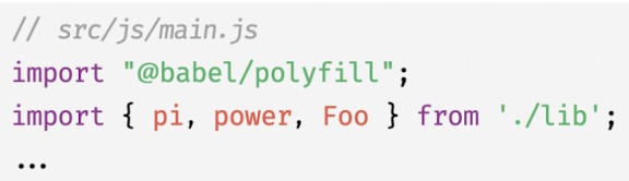 - 1) ES6의 import 사용하는 경우 : 진입점의 선두에 먼저 폴리필 로드
