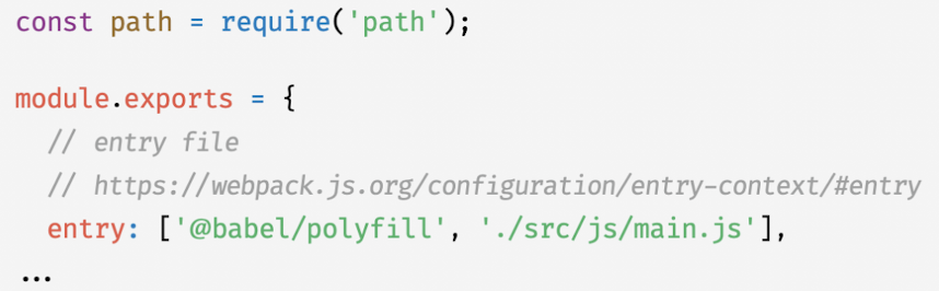 - 2) Webpack 사용하는 경우 : webpack.config.js 파일의 entry 배열에 폴리필 추가