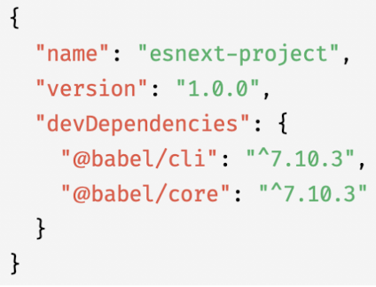 - 설치 완료 시 프로젝트 루트 폴더에 babel.config.json 설정 파일을 생성하고 파일 내에 아래 코드 작성