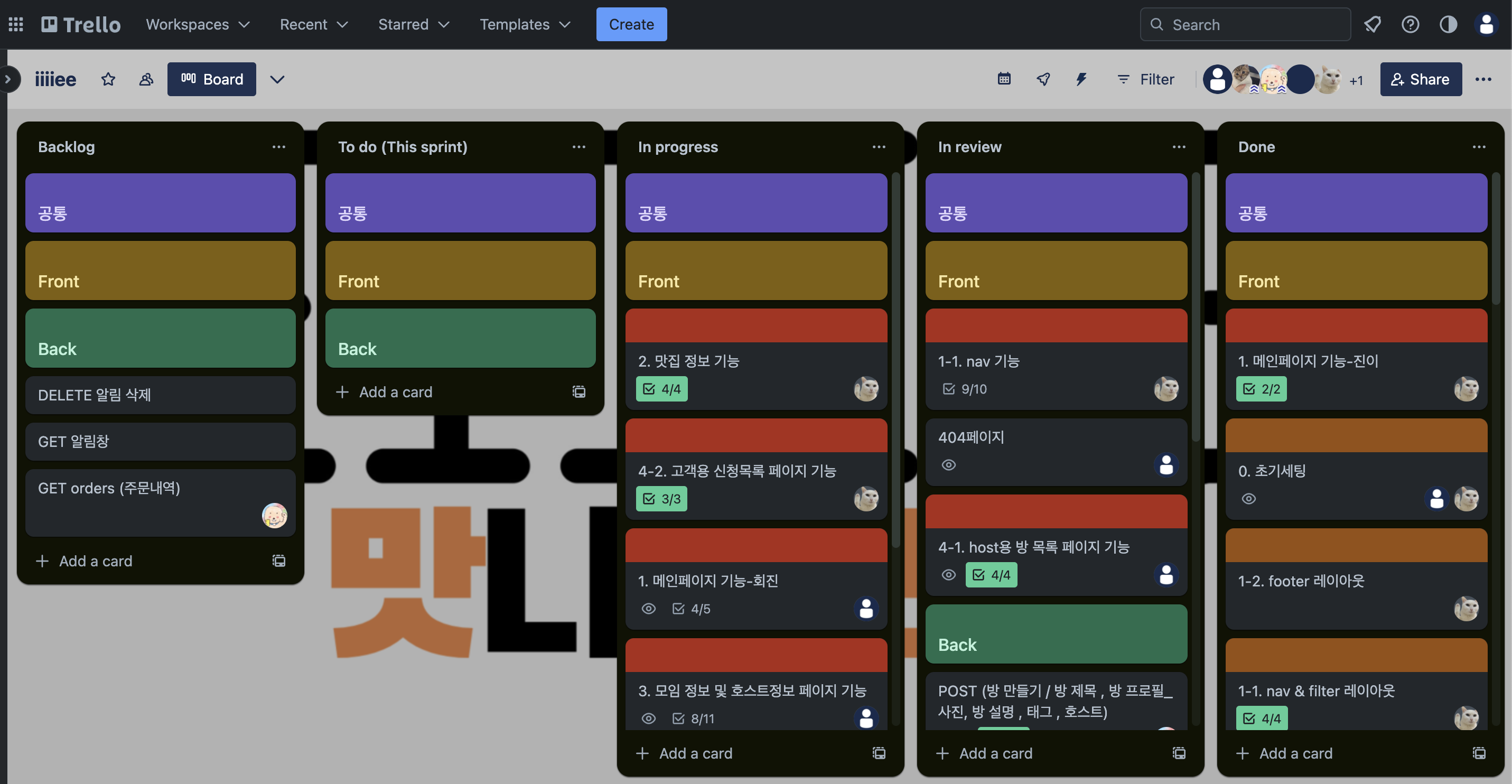 1차 프로젝트를 진행하면서 제일 어렵게 느껴졌던 부분이 백엔드와의 통신과 협업하는 동료의 코드리뷰 두가지였다. 그래서 이번 2차 프로젝트에서는 많이 경험을 해보고 익숙해지는 것에 목표를 두었다. 첫번째로 백엔드와의 통신은 의도하지는 않았지만 대부분의 api를 내가 들고오게 되면서 정말 원없이 할 수 있었다. 처음 통신을 할 때만 해도 통신이 된건지 안된건지도 몰랐고 에러가 생기면 어찌할 줄 몰랐는데 지금은 네트워크 먼저 켜서 통신을 확인할 수 있었고 백엔드보다 빠르게 에러 상황을 알려주곤 했다. 프로젝트 후반쯤에는 다른 팀에서 백엔드와 맞춰보는 상황이면 나를 먼저 찾기도 했다.