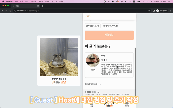 유저의 리뷰의 전체 평균 평점을 나타내기 위해 import로 가져온 것 중 평점에 관련된 함수인 totalRating을 불러온 뒤 데이터를 인자로 보내준다. 전체 댓글의 별점을 갯수로 나눠야해서 댓글의 전체 데이터를 인자로 보내주었다. 이제 totalRating함수에서 계산된 값이 화면에 출력될 것이다.