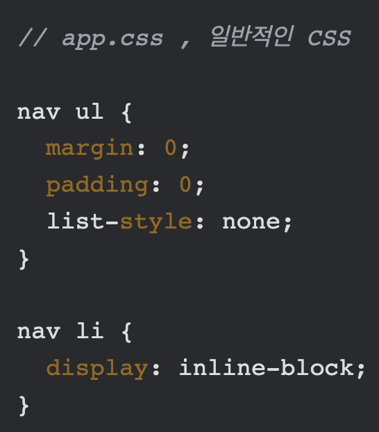 - 현재 사용 중인 스타일만 DOM에 포함