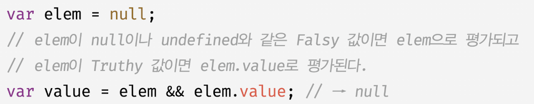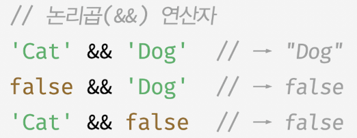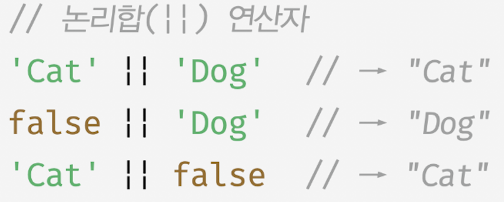 - 논리 연산의 결과를 결정하는 피연산자를 타입변환하지 않고 그대로 반환