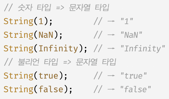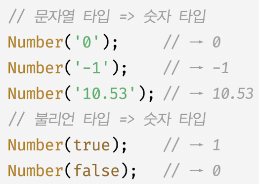 - 타입변환이랑 기존 원시값을 사용해 다른 타입의 새로운 원시 값 생성