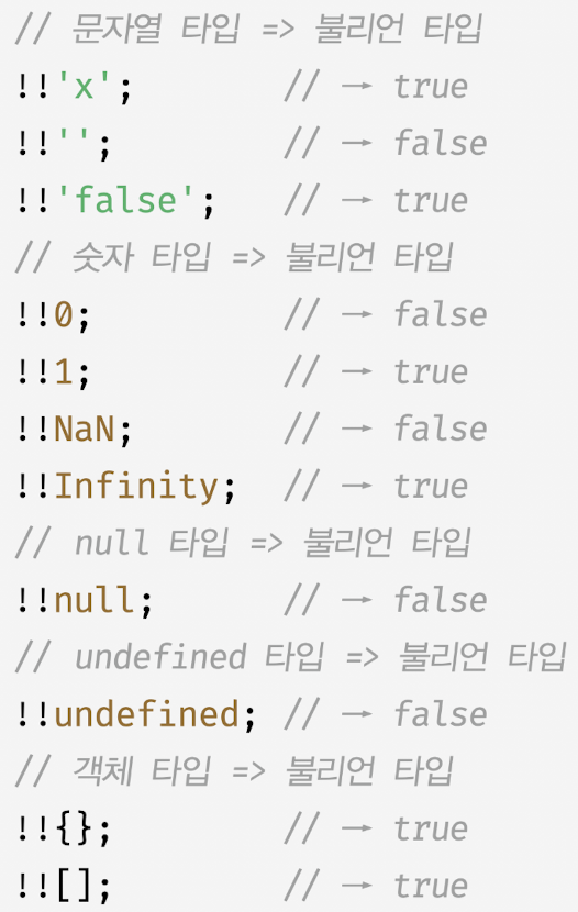 | 예시 | true, {}, [], 42, "0", "false"), new Date(), -42, 12n, 3.14, -3.14, Infinity, -Infinity |