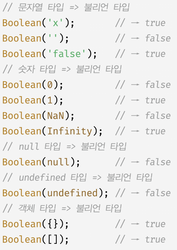- 코드를 예측하기 위해 타입변환이 어떻게 동작하는지 정확이 이해해야함