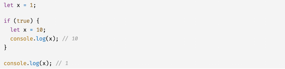 - if 문의 코드 블록 실행되면 if 문의 코드 블록을 위한 블록 레벨 스코프 생성