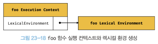 - 외부 렉시컬 환경에 대한 참조에 foo 함수 정의가 평가된 시점에 실행중인 실행 컨텍스트의 렉시컬 환경의 참조 할당