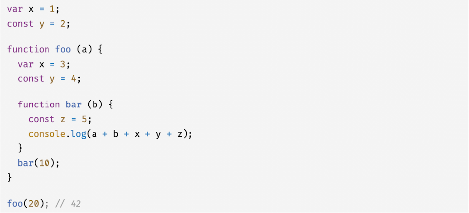 - 어느 스코프의 식별자 참조하면 되는지 결정할 필요 있음