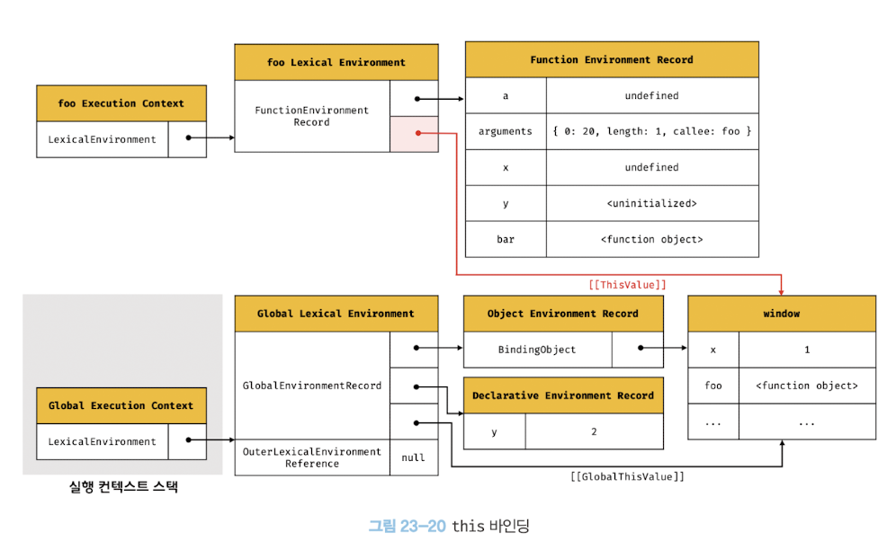 - foo 함수는 일반 함수로 호출 => this = 전역 객체 => [[ThisValue]] 내부 슬롯에는 전역 객체를 바인딩