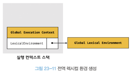 - 전역 렉시컬 환경 생성 -> 전역 실행 컨텍스트에 바인딩