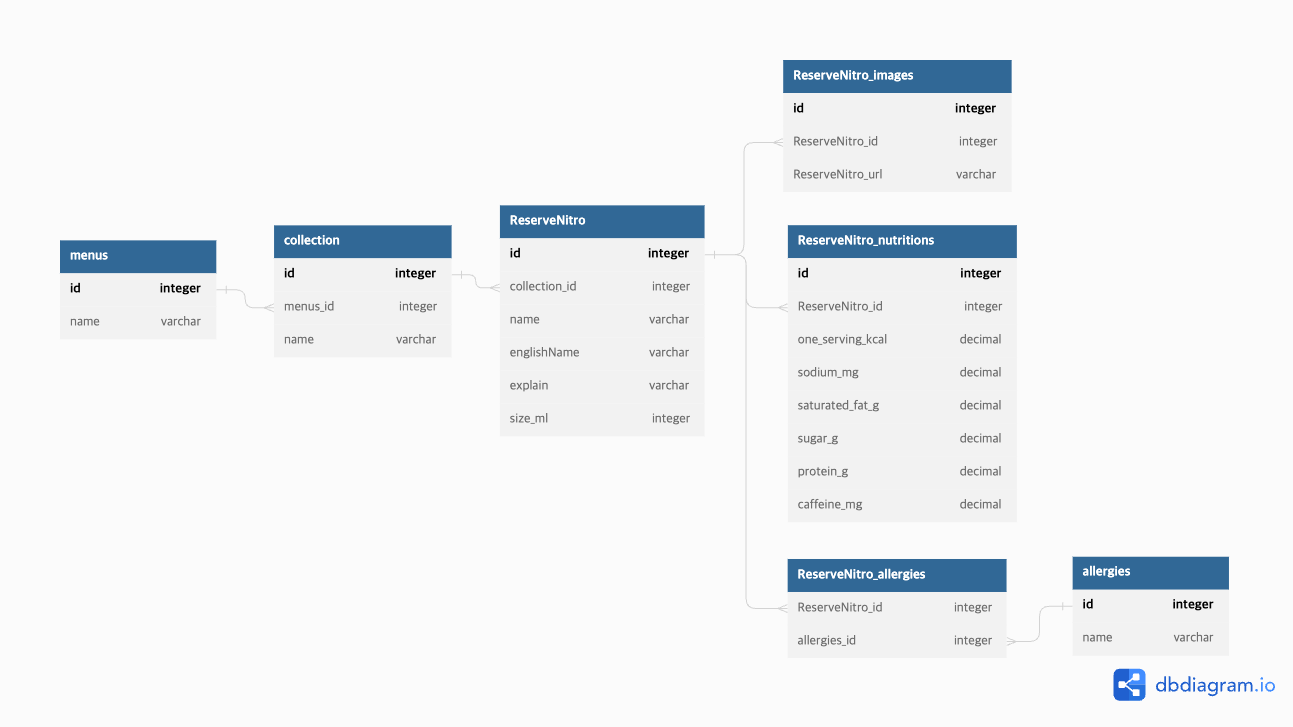 2. ReservNitro라는 커피이름을 적어서 그 커피에만 적용되는 ERD가 되었다.