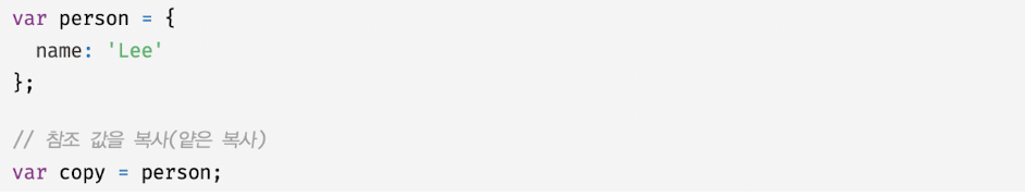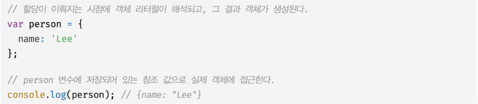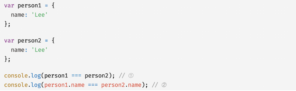 - 프로퍼티 값을 참조하는 person1.name과 person2.name은 값으로 평가되는 표현식이며 원시값 Lee로 평가됨