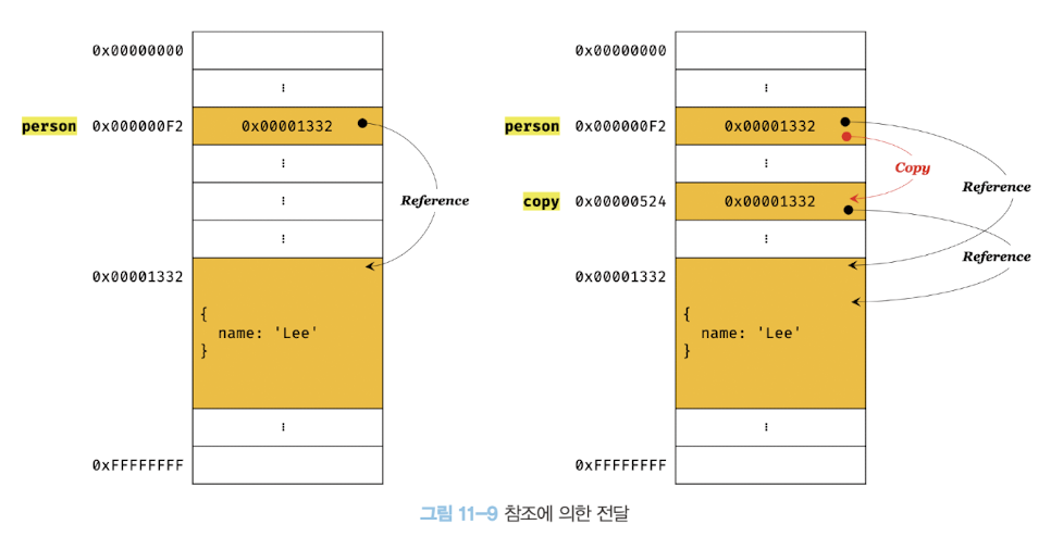 - 객체를 가리키는 변수(원본)를 다른 변수(사본)에 할당하면 원본의 참조값이 복사되어 전달되는 것