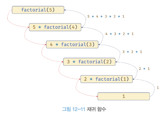 - 재귀 호출 : 함수가 자기 자신을 호출하는 것