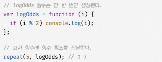 콜백함수가 고차 함수 내부에만 호출된다면 콜백함수를 익명함수 리터럴로 정의하면서 바로 고차 함수에 전달하는것이 일반적