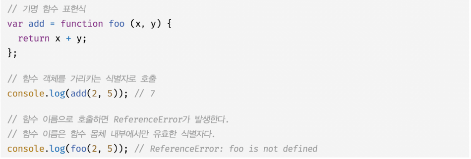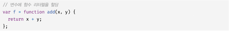 - 함수는 객체 타입의 값 => 식별자 붙여 어떤 역할을 하는 함수인지 알아볼 수 있음