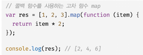 고차함수 : 매개 변수를 통해 함수의 외부에서 콜백함수를 전달받은 함수 또는 함수를 반환하는 함수