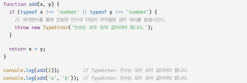 - 1번 예제 : 함수 정의가 함수 선언문의 형식에 맞지 않기 때문에 에러 발생