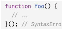 - 함수 선언문 뒤의 (소괄호)는 그룹 연산자로 해석되고 그룹 연산자에 피연산자가 없어서 에러 발생