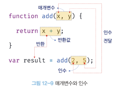 - 함수 호출 : 인수를 매개변수를 통해 함수에 전달해 함수의 실행을 명시적으로 지시해야 함수가 실행됨