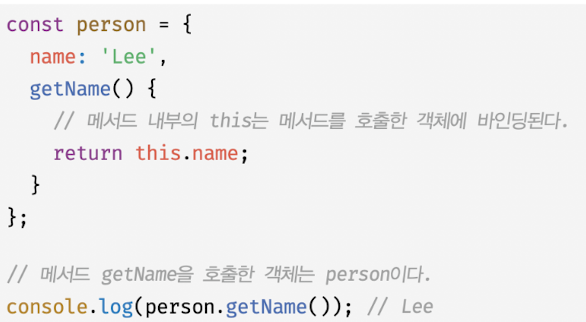 getName 메서드는 person 객체의 메서드로 정의 됨
