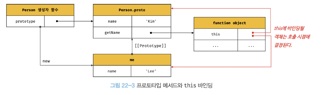 프로토 타입 메서드 내부에서 사용된 this도 일반 메서드와 마찬가지로 해당 메서드를 호출한 객체에 바인딩 됨