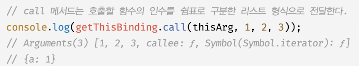 - call 메서드는 호출할 함수의 인수를 쉼표로 구분한 리스트 현식으로 전달