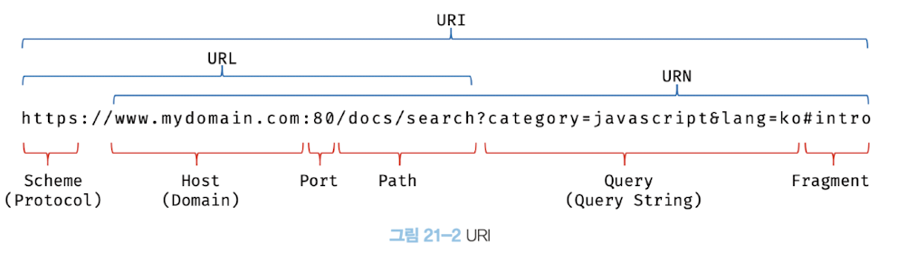 - URI 문법 형식 표준에 따르면 URL은 아스키 문자 셋으로만 구성되어야하며 한글을 포함한 대부분의 외국어나 아스키 문자 셋에 정의되지 않은 특수 문자의 경우 URL에 포함될 수 없음