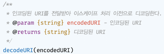 - decodeURIComponent 함수는 매개변수로 전달된 URI 구성 요소 디코딩