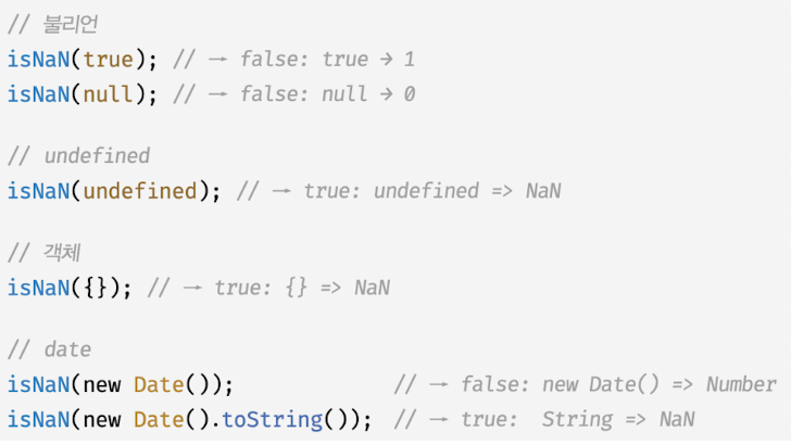 - 전달받은 인수가 NaN인지 검사해 그 결과를 불리언 타입으로 반환