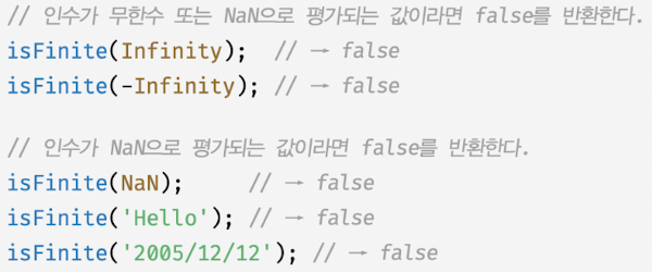 - 전달받은 인수가 정상적인 유한수인지 검사해 유한수이면 true 반환, 무한수이면 false 반환